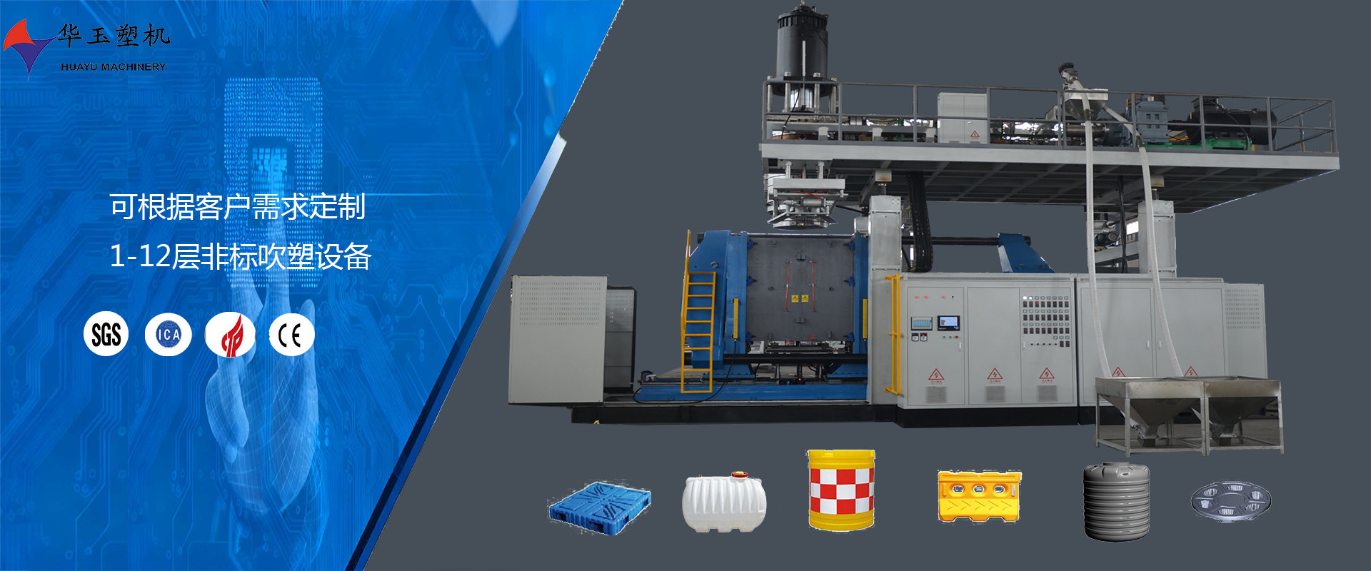 濰坊市華玉塑料機械有限公司創辦于貳零零貳年,是超大型全自動中空吹塑設備專業生產廠家。公司融合國內外先進技術和理念,專業設計、生產、銷售一層到十層的大型全自動中空成型機組。我公司生產的各型號吹塑機可生產50升到30,000升的各類塑料水桶,噸桶、雙環(huán)桶、水馬、路錐、隔離墻托盤、桌板、浮筒、皮劃艇、工具箱包等中空制品。優(yōu)良的品質、穩(wěn)定的性能、優(yōu)越的性價比使公司產品不僅暢銷國內市場,并出口到亞洲、東南亞、中東、歐洲、北美、南美、非洲等80多個國家和地區,深受客戶的好評...
